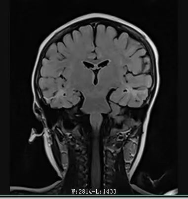 MRI:雙側(cè)額葉,雙側(cè)顳葉異常信號伴萎縮